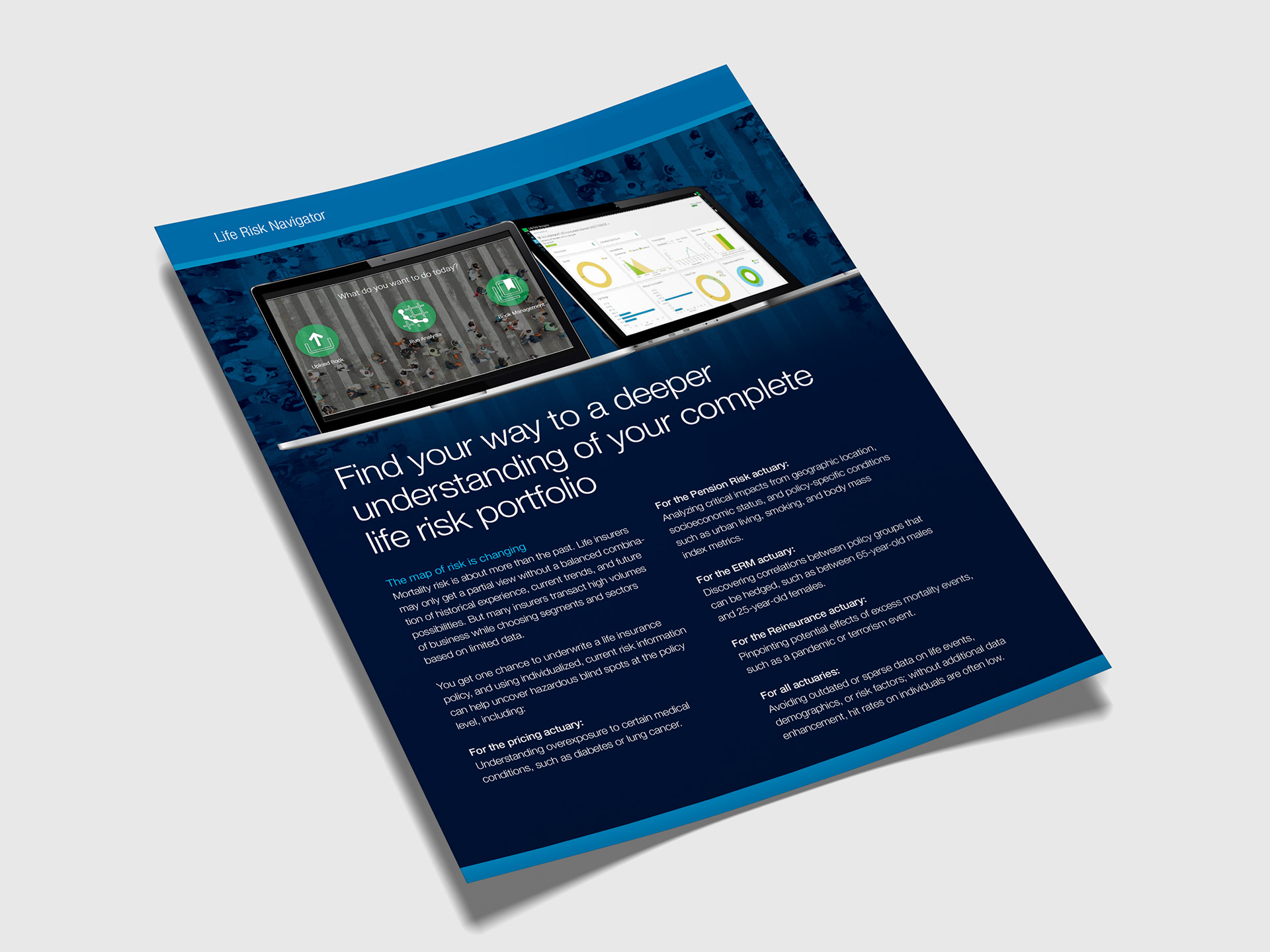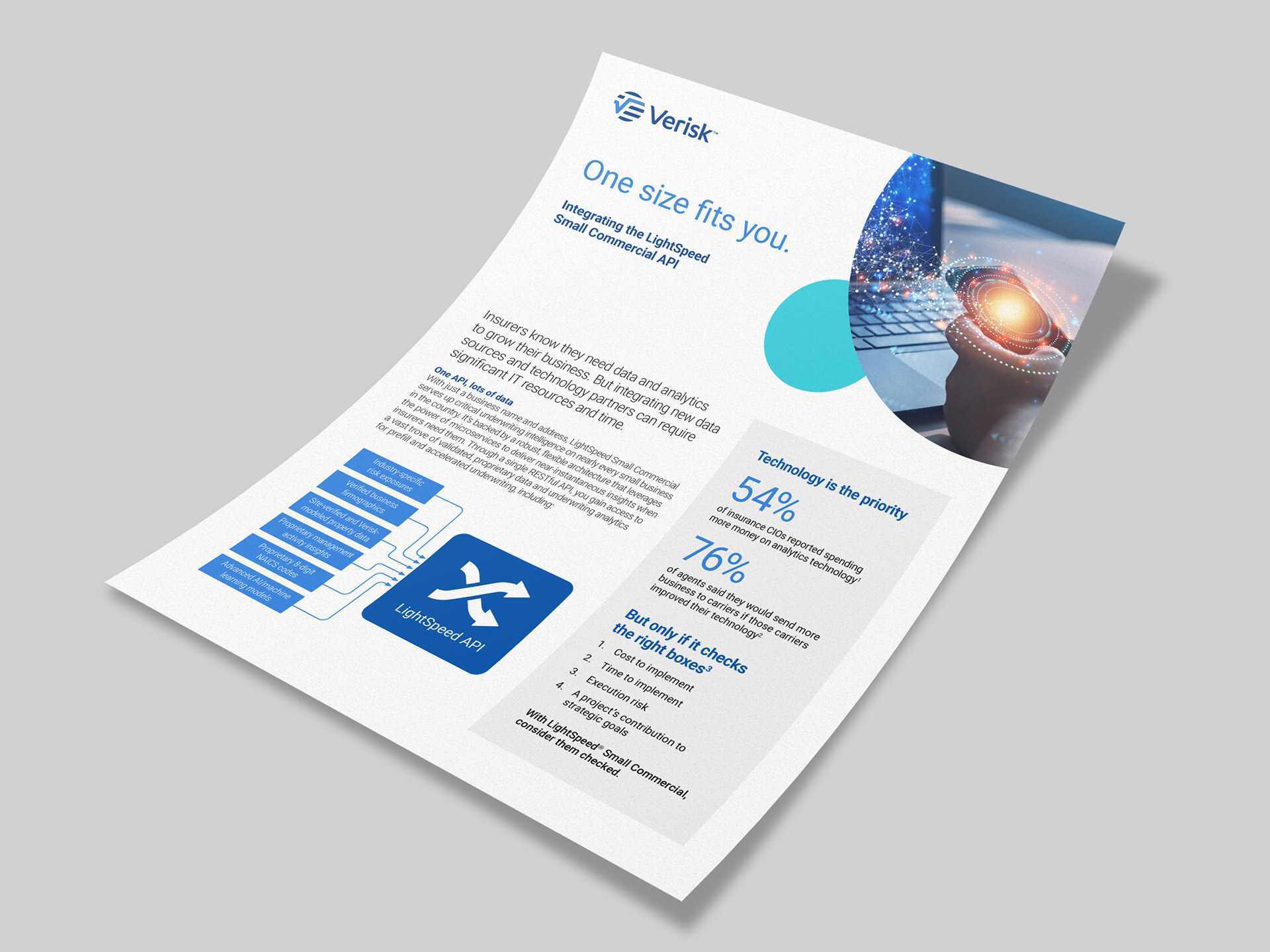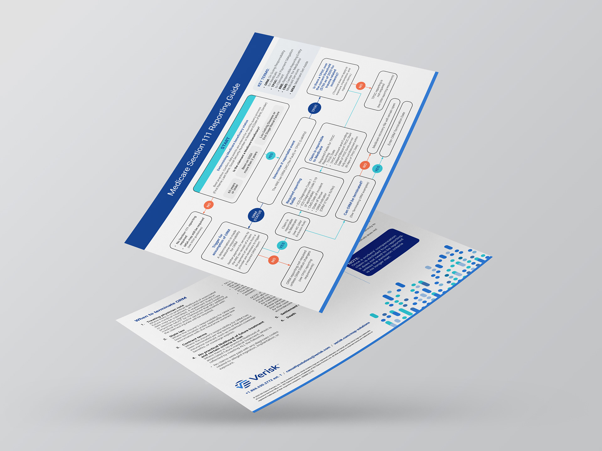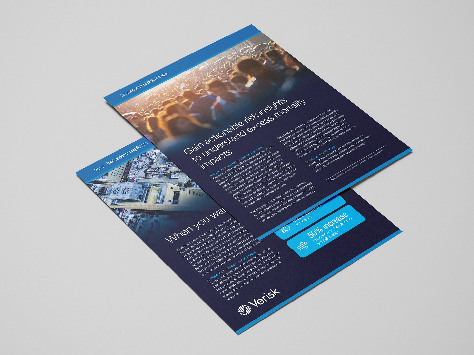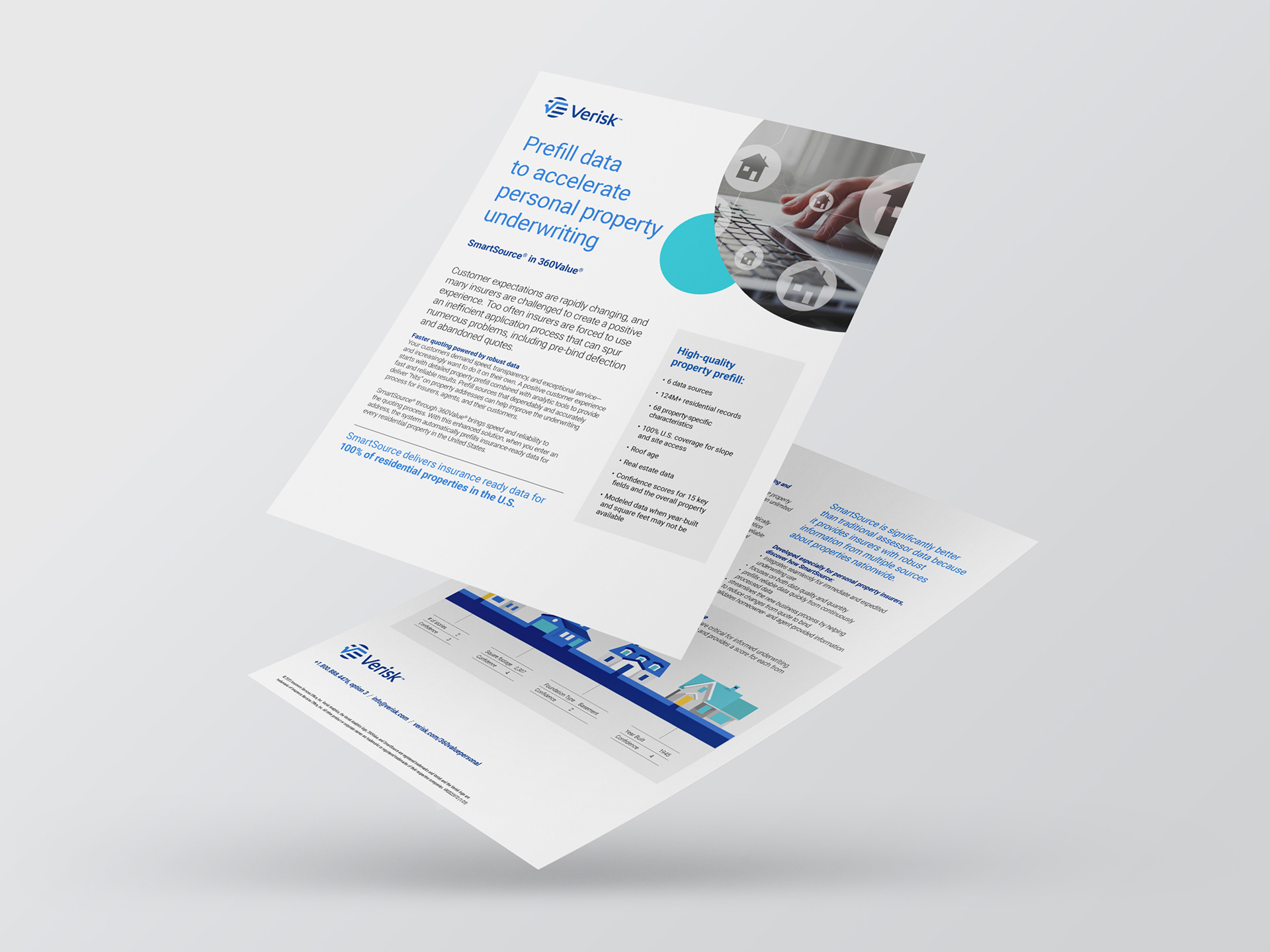 Like brochures, fliers are also used to promote Verisk's hundred-plus products. Most fliers are one- or two-sided single page handouts. Before the company rebranded, I led the team that put in place the look and feel of our brochures and fliers. After the rebrand, I led my marketing team's efforts to convert all of our existing fliers to the new look and feel, ensuring that they adhered to the new brand guidelines.